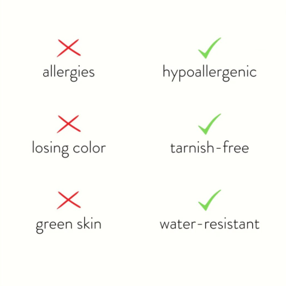 Realizzato in acciaio inossidabile impermeabile, non dovrai mai più preoccuparti di dita verdi, scolorimenti o opacità.